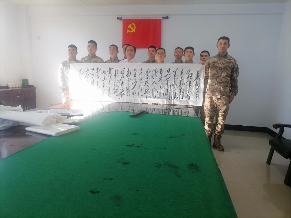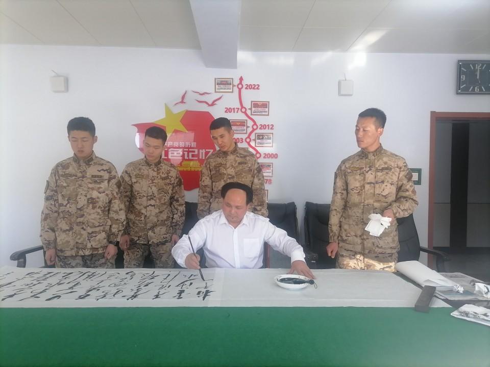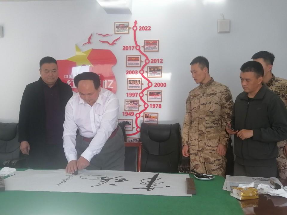 在此次活動(dòng)中,特型扮演者趙士奎老師為承德支隊(duì)官兵題寫(xiě)了充滿(mǎn)激情的詩(shī)詞《長(zhǎng)征》及“軍魂”等書(shū)法作品,展現(xiàn)了其精湛的書(shū)法技藝和對(duì)傳統(tǒng)文化的深刻理解,贏得了官兵們的敬意。