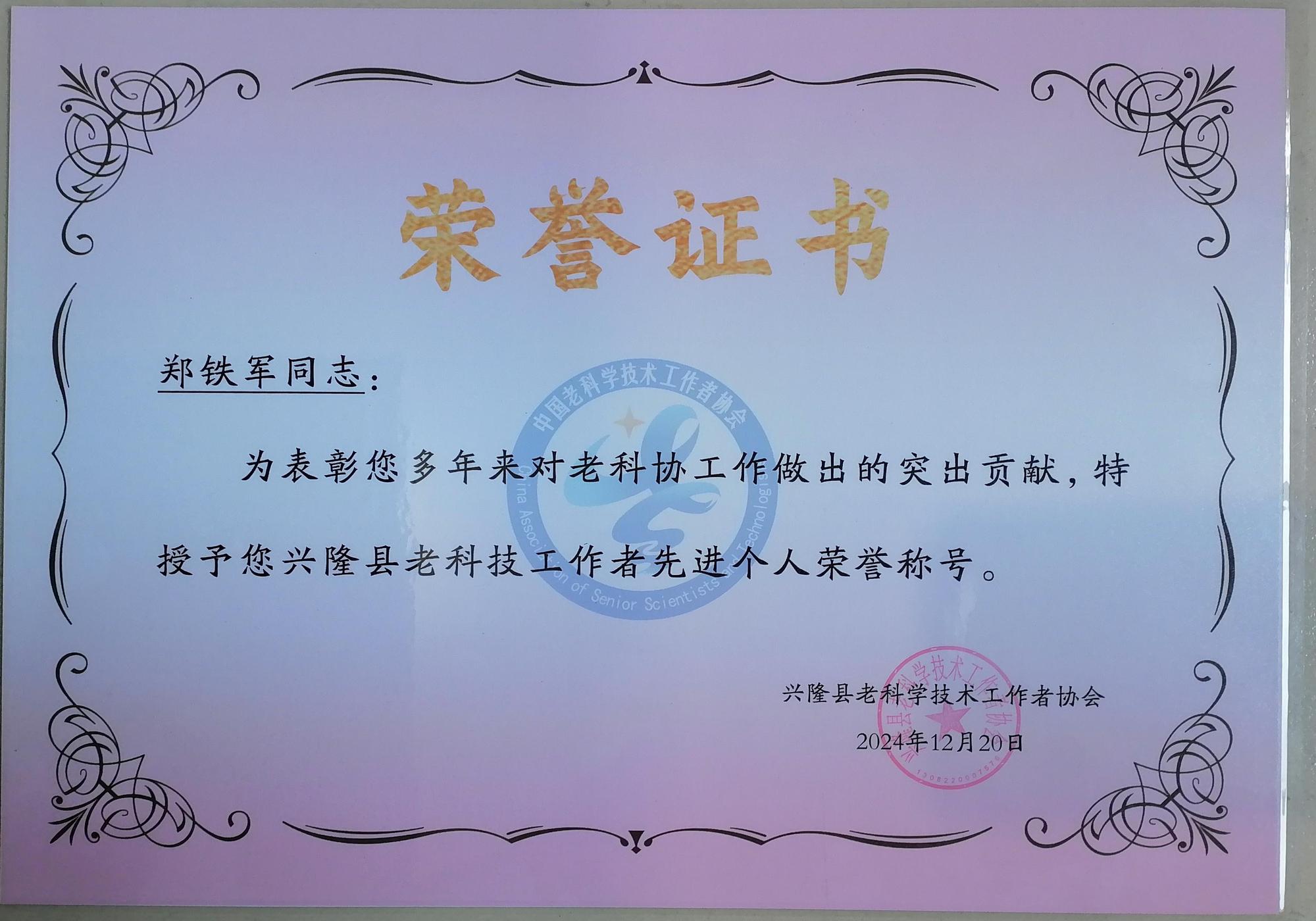 2024年12月20日上午,興隆縣老科協(xié)2024年度總結(jié)表彰大會及2025年迎新年聯(lián)歡會,在縣老干部局一樓活動中心隆重舉行。老干部局三級主任科員陸雅麗、縣老科協(xié)會長張江以及各分會的會長、副會長和全體100多名會員出席了此次盛會。在此次大會上,興隆縣老科協(xié)傳統(tǒng)文化分會榮獲先進(jìn)單位榮譽稱號,老科協(xié)理事、傳統(tǒng)文化分會會長鄭鐵軍同志榮獲老科協(xié)先進(jìn)個人榮譽稱號。