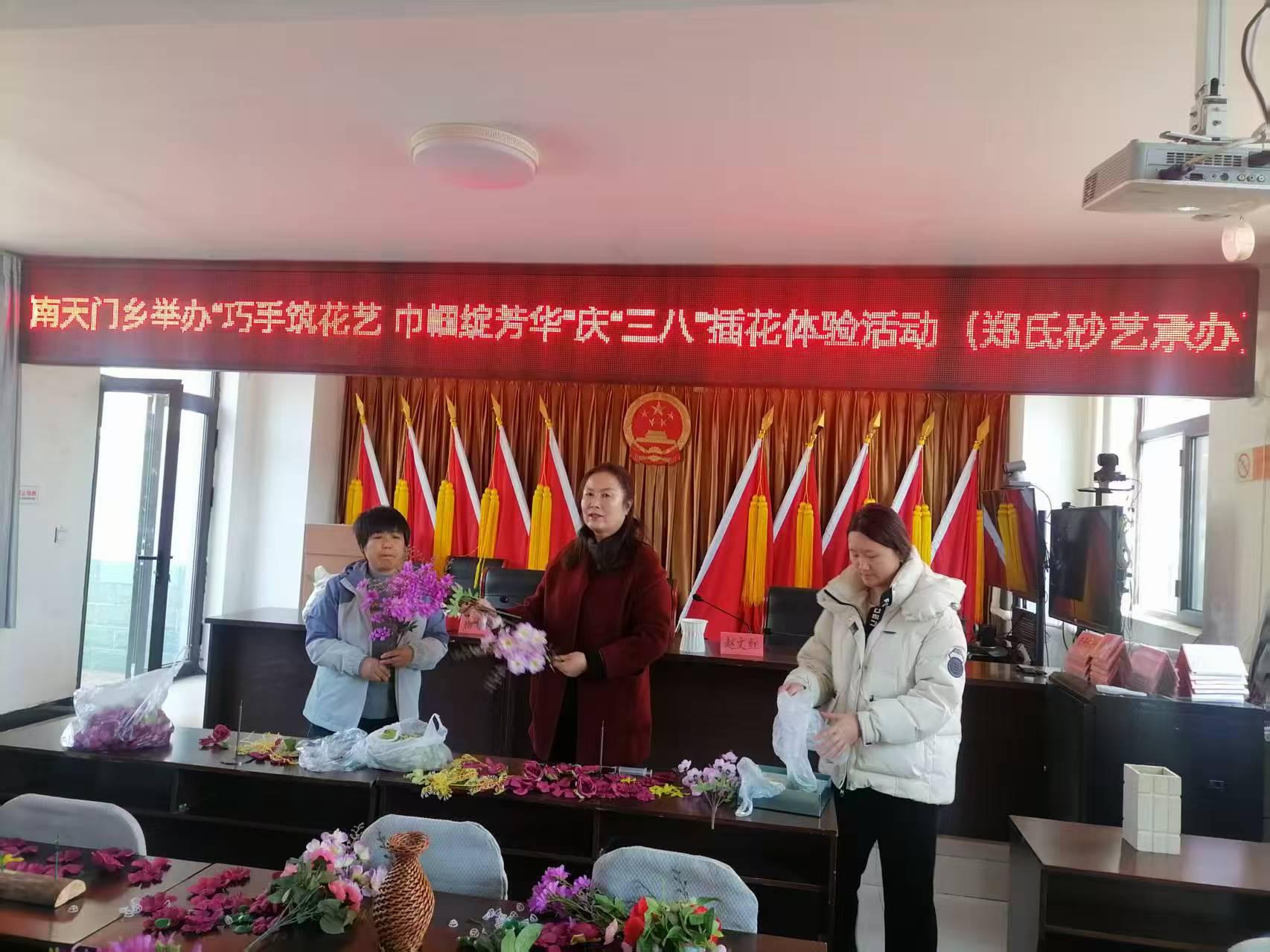 2025年3月6日,由南天門滿族鄉(xiāng)人民政府主辦,鄭氏砂藝承辦的“巧手筑花藝 巾幗綻芳華”慶“三八”插花體驗活動在南天門鄉(xiāng)政府圓滿結束,吸引了30余名南天門鄉(xiāng)農(nóng)村女性的積極參與。此次活動通過絹花制作體驗,生動展示了傳統(tǒng)工藝在鄉(xiāng)村振興中的積極作用,為鄉(xiāng)村發(fā)展注入了新的活力。